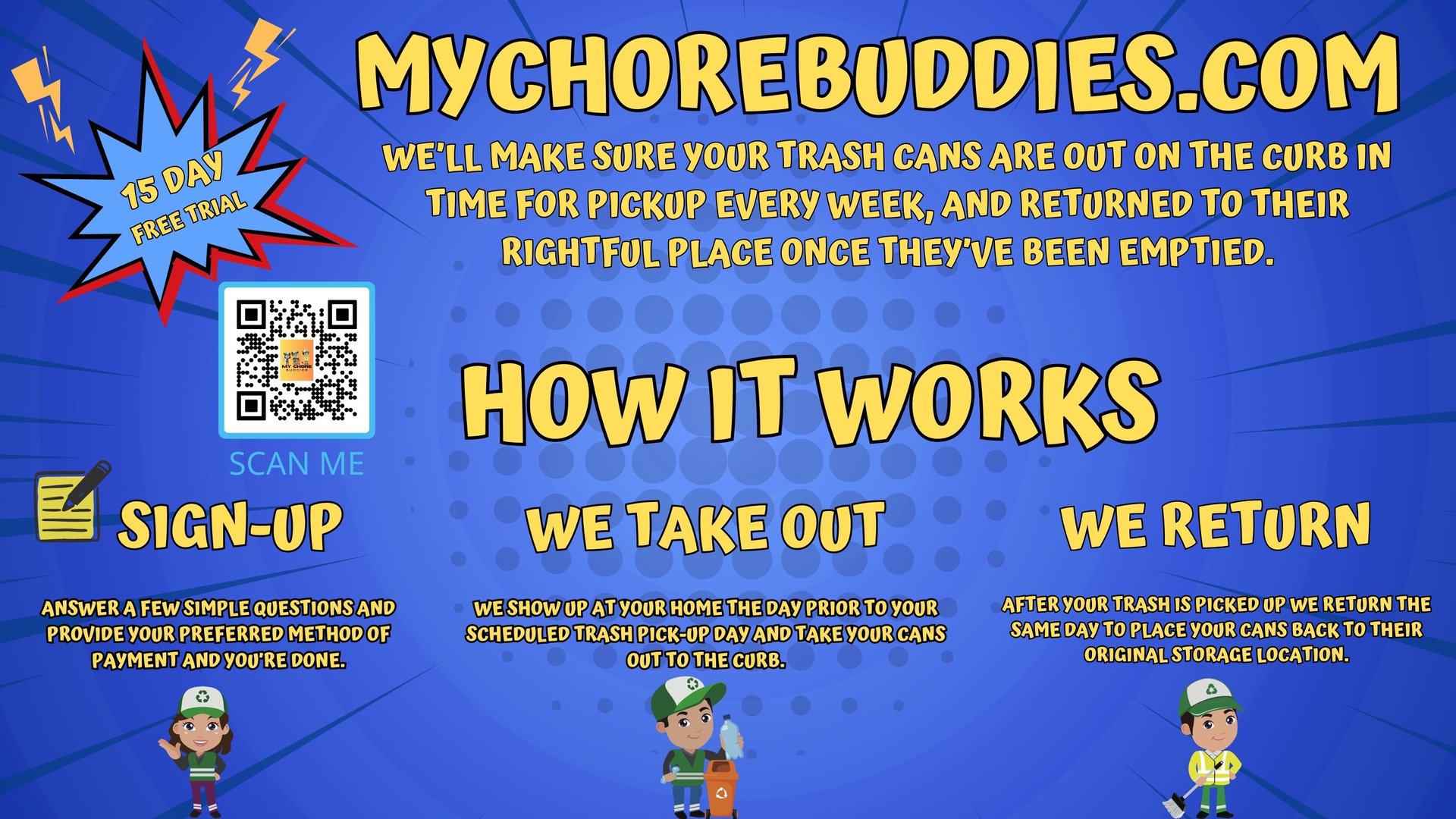 We are the local can to curb service, we will take care you're cans to the curb every week and put them back on trash day.